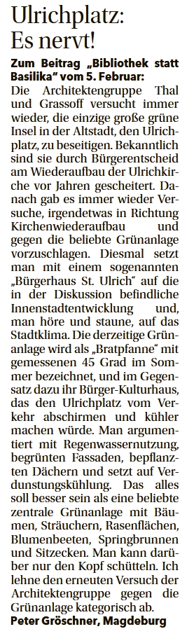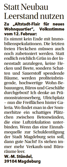 Leserbriefe in der Magdeburger Volksstimme